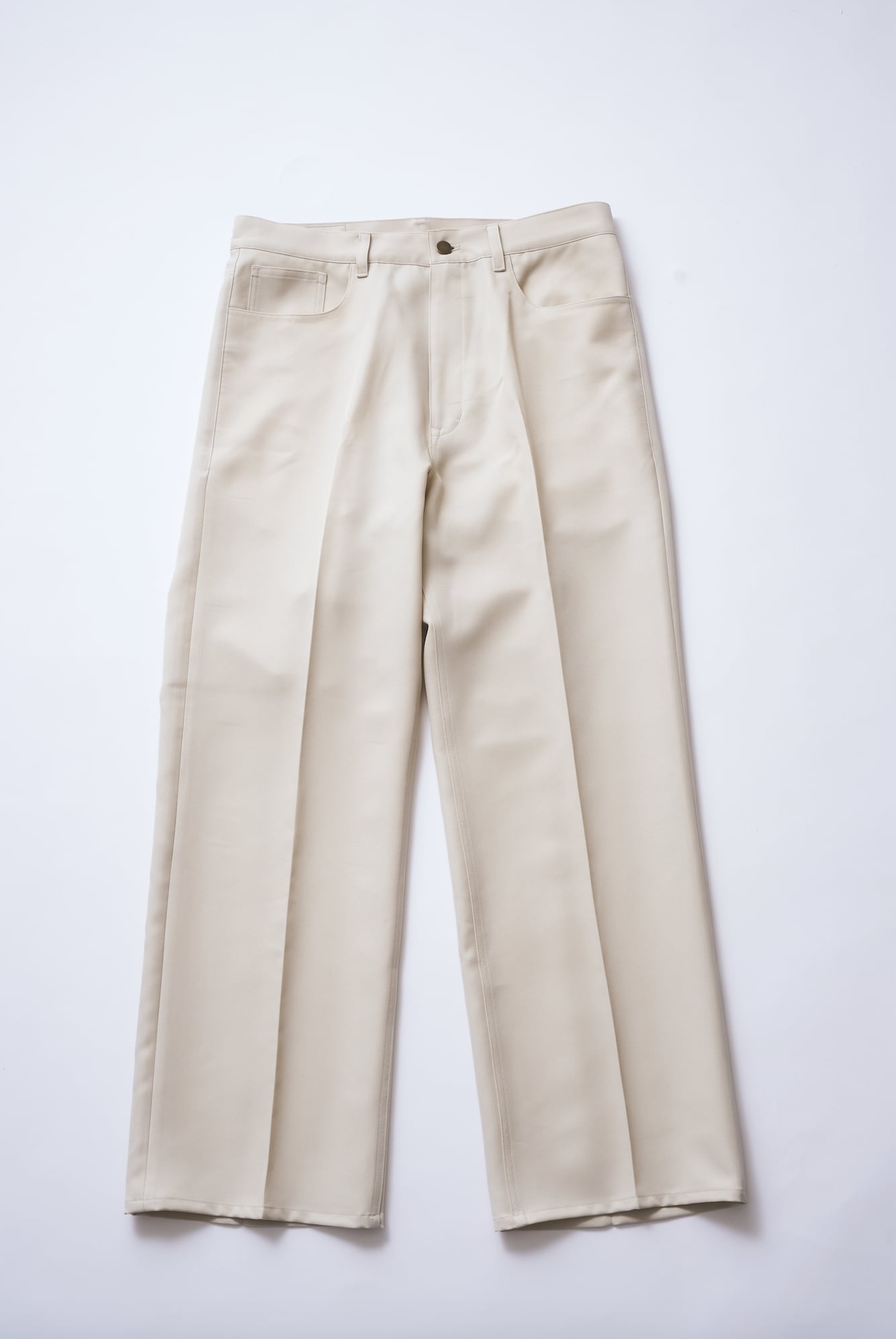 スラックスとカジュアルの間を狙ったハイブリッドトラウザーズとして、日常に自然と馴染むバランスに仕上げた。